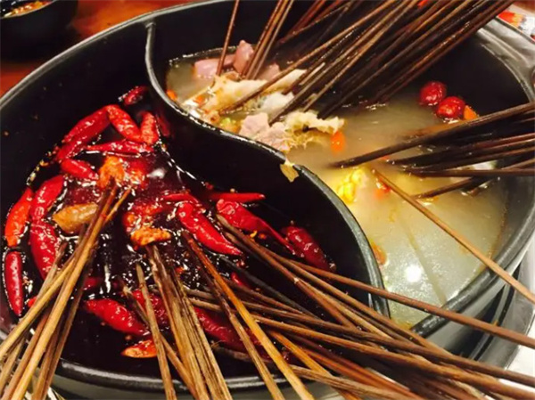 巴蜀人喜欢吃辣椒,而串串香也是越辣越好,不但要辣,还要辣的香,所以锅底的佐料就十分重要了。