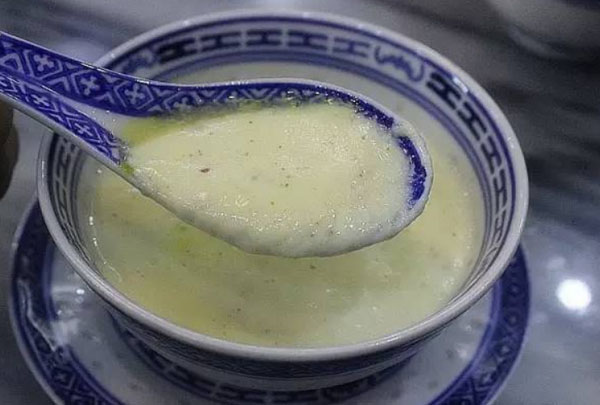 黄氏正轩姜撞奶是用上等的姜磨成汁,用新鲜水牛奶“相撞”而成。它的姜味浓郁,香甜嫩滑,有暖胃、驱寒、美容等结果。而且它的营养成分极高,含钙、铁、锌、维生素等对人身体百利而无一害的成分,老少咸宜。姜撞奶虽简单,但要撞出一碗好的姜撞奶却不容易。姜太稀不成形,太浓味苦,牛奶太热不行,而且对于手法也有一定的讲究。所以黄氏正轩的姜撞奶之所以出名,就因为选用的材料新鲜至于,师傅的手法也是非常专业的。后才会有一碗香喷喷的姜撞奶呈现在客人面前。