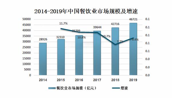 2019年,国内餐饮业收入达4.67万亿;