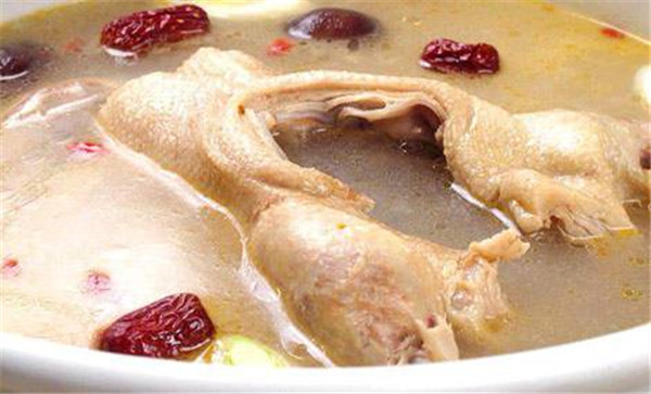 老鸭汤是一道安徽沿江的特色传统名菜,制作原料主要有活老鸭、精盐等。汤汁澄清香醇,滋味鲜美,鸭脂黄亮,肉酥烂鲜醇,是一种集美食养生,传统滋补,民间食疗为一体的大众消费型汤锅食品。油碟配制:一般用香辣酱作调味油碟。也可根据个人爱好,喜食麻辣的用麻辣酱,喜食清香的可用芝麻酱或自行用香油加蒜泥作调味油碟。1、将老鸭取出内脏后洗净,切块;酸萝卜清水冲洗后切片,老姜拍烂待用。 2、将鸭块倒入干锅中翻炒,待水汽收住即可(不用另外加油)。 3、水烧开后倒入炒好的鸭块、萝卜,加入备好的老姜、花椒。 4、将鸭块连同汤水倒入高压锅煮制。 注:经典一些的做法是用炖锅慢火煨上一两个小时,这里为节约时间用高压锅煮制。