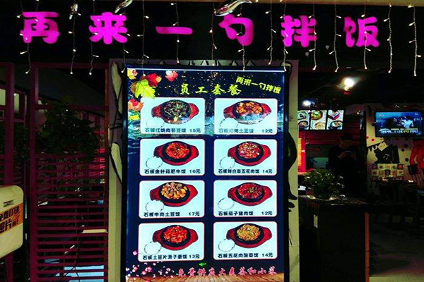 再来一勺拌饭加盟投资费用:12-21万元(点击了解再来一勺拌饭每项投资费用详情)