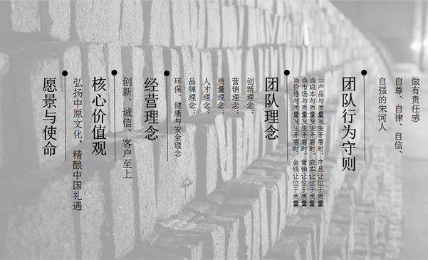 河南省宋河酒业股份有限公司是根植于中原深厚文化沃土成长起来的国内大型白酒酿造企业,地处淮河名酒带的源头,位于老子故里、道家文化发祥地中国鹿邑枣集镇(现宋河镇),是我国著名的传统酒乡。宋河酿酒历史久远,始于春秋,盛于唐宋,可上溯3600多年的历史,所酿美酒被宋太宗赵光义钦定为“宫廷贡酒”,有“天赐名酒,地赐名泉”“枣集美酒,名不虚传”之美句流传,更被誉为中国古代 “十大宫廷贡酒”。 公元前518年,孔子问礼老子于古宋河之滨,老子以枣集酿造的美酒招待孔子,孔子饮后,留下“唯酒无量,不及乱”的千古饮酒之道。从汉代至宋代,先后有八位帝王曾亲临鹿邑,设坛以枣集酒拜谒老子。由古至今,宋河酒享有“八皇朝皇封御酒”之美誉。 1968年,鹿邑县人民政府为了挖掘文化遗产及悠久酿酒技艺,将二十余家较大的酿酒作坊进行联合,以宋河之滨原有枣集酒坊为基础,建立了国营“鹿邑酒厂”,并于1988年更名恢复为宋河酒厂,同年,在全国第五届评酒会上,宋河粮液荣获国家名酒称号及金质奖,成为中国十七大名酒之一。 礼遇中国三千载,荣耀盛世五十年,历经半个世纪的发展,如今的宋河酒业酿酒工业园区占地面积110万平方米,建筑面积62万平方米,拥有发酵池10000条,生产班组126个,拥有河南中国首席白酒品酒师及国家级白酒评委10人,省市级酿造技师100多人。年产原酒3万吨,存储能力达16万吨以上。为传承中原白酒文化,促进地方经济发展做出了突出的贡献。 宋河酒业旗下涵盖“国字宋河”、“宋河粮液”和“鹿邑大曲”三大主导品牌领军河南,名扬海内外。尤其是以国字宋河为代表的豫酒高端品牌,被中国酒业协会认定为“中国(河南)地域文化标志酒”,并于2018年,被授予“中华文化名酒”荣誉,也是上海世博会河南馆指定白酒,多年来,在诸多省内外重大活动中被遴选为礼遇专用品牌,以中国礼遇,礼遇中国;公司旗下宋河粮液更是享誉中原,名震全国,以“绵、甜、净、香”的中原浓香型白酒独特风格,载誉无数,家喻户晓。鹿邑大曲是宋河酒业三大主导品牌之一,为河南传统名牌产品,以其质优价美口感柔顺的特点和河南传统名牌产品的品牌知名度,成为中原地区光瓶酒的领导者,畅销半个世纪,更是新时代民酒典范之作。 作为河南获得中国名酒称号的浓香型白酒,宋河酒业不仅肩负着豫酒振兴领军者的责任感,更担当着豫酒的品质与品牌荣耀,承载着三千多年的中原酒文化传承。于新时代,迎新机遇,谋新未来,宋河人以心之所向,志必所达,工于“匠心”,奋勇向前的姿态,立足中原,礼遇中国。